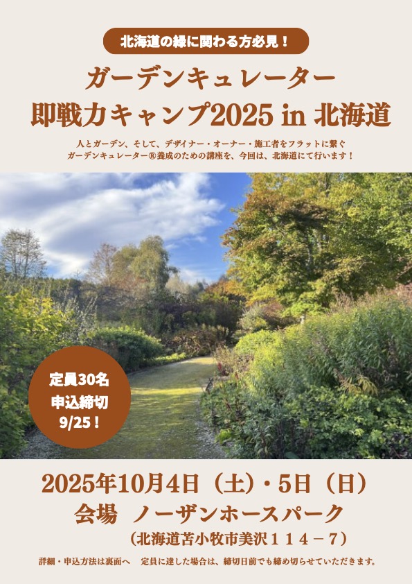 人とガーデン、そして、デザイナー・オーナー・施工者をフラットに繋ぐガーデンキュレーター®養成のための講座を、今回は、北海道にて行います!